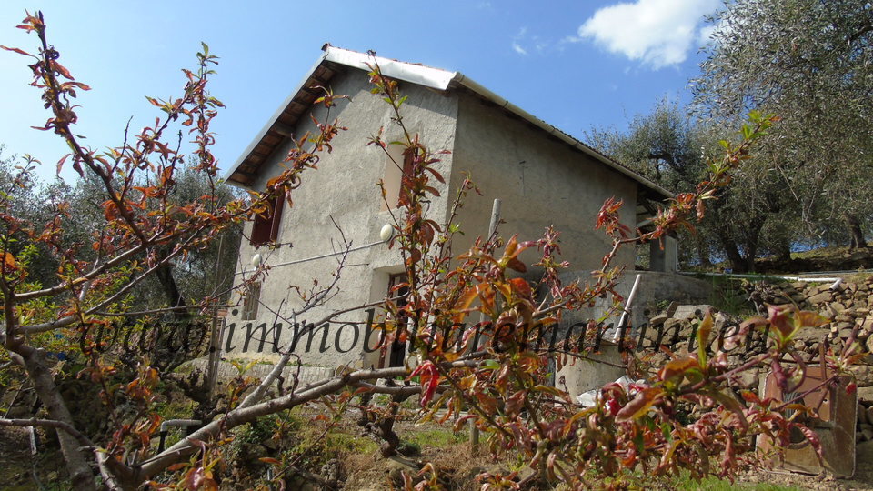Country house in Dolceacqua, in the heart of the rossese vineyards of Arcagna DOC. With wonderful view of the village and the hills, on two floors of 50 square meters, with possibility of expansion. On the ground floor a bathroom, closet room, storage room. On the first floor a kitchen and a bedroom. Presence of an irrigation tank with agricultural and drinking water and a large land of about 4470 square meters, cultivated for 2000 square meters of vineyard with Rossese DOC grapes and 2470 square meters of olive grove with 55 plants.