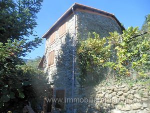 Maison de 115 mètres carrés sur trois étages, dans les collines de Pigna. Deux pièces au rez-de-chaussée. Cuisine/salon, chambre et salle de bain au premier étage et grenier. Grande terrasse avec four et barbecue aux abri, deux places de parking couvertes, différentes salles de stockage. Chauffage autonome avec radiateurs à bois. Chaudière à eau chaude électrique. Terrain d'environ 10.000 mètres carrés avec de petits chalets pour outils et hangar à bois. Culture d'oliviers et d'arbres fruitiers (abricot, noix, vignes, pruneaux, pommes, kiwis, kakis, mandarines, orange, cerises, noisettes, figues). Eau de source et cuve de décantation.Caractéristiques: