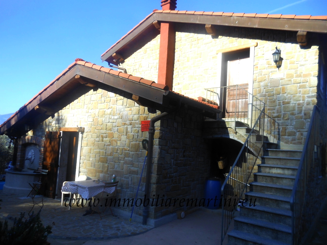 PRIX SUR REQUÊTE. Magnifique maison en pierre ensoleillée toute l'année avec vue sur la montagne. Dans la région de Dolceacqua - Località Pila - Morghe. 1er bâtiment Composé de: une cuisine, hall de 60 m², une salle de stockage, deux services; 2 chambres doubles avec salle de bain privée et magnifique dhor pavé. Pour un total de 200 mètres carrés avec nouvelle couverture isolée et chauffage indépendant par radiateurs. 2ème bâtiment Composé de: grande pièce de 25 mètres carrés avec salle de bain fonctionnelle adaptée aux personnes handicapées, une chambre double avec salle de bains; pour un total de 70m². Accès facile à la propriété. 15000m² de terrain avec oliveraie et 60 arbres fruitiers. Réservoirs Imhof. Idéal comme B & B ou ferme. Possibilité de construire un héliport et une piscine. Seulement 15 minutes de la mer et 1: 15 minutes de l'aéroport de Nice. PRIX SUR REQUÊTE.Caractéristiques: