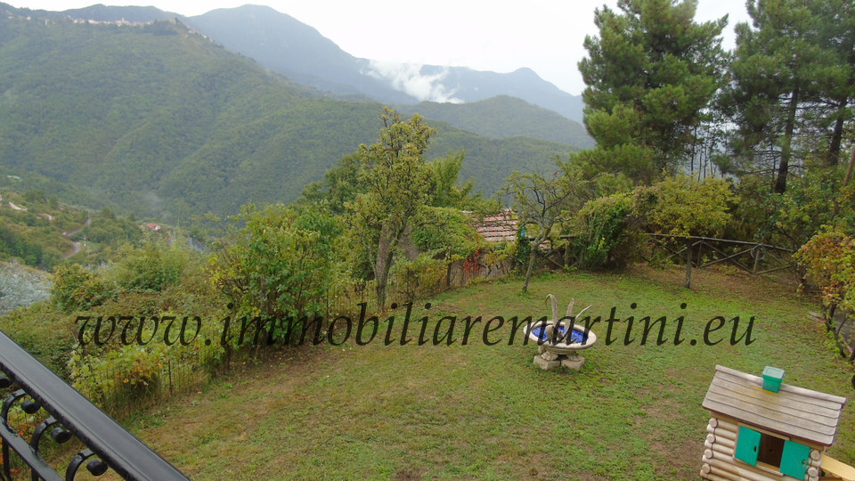 Villa sulle alture di Castel Vittorio con vista sul mare e sui paesi di Baiardo e Perinaldo. La villa è composta al piano terra da: cucina/soggiorno, un bagno, veranda coperta, una cantina equipaggiata, garage, e forno a legna esterno. Primo piano con cucina abitabile, una sala con caminetto, due camere da letto, bagno con doccia, terrazzo. Secondo piano mansardato con grande camera e servizio igienico. Terreno piano di 2900 mq con prato e frutteto. Acquedotto acqua potabile ed acquedotto irriguo. Riserva d'acqua. 3 vasche di proprietà per una capienza di 50 mq. Castelvittorio posto sul bricco di un colle coperto di ulivi, si può definire il terrazzo della Val Nervia. Dove si respira aria purissima; ricco di acque sorgenti come pure di vigne produttrici del tipico vino “Rossese”. Tipici ristoranti per gustare le specialità confezionate alla ligure tra cui: ravioli, tagliatelle, nonche' la famosa Sagra del "Turtun